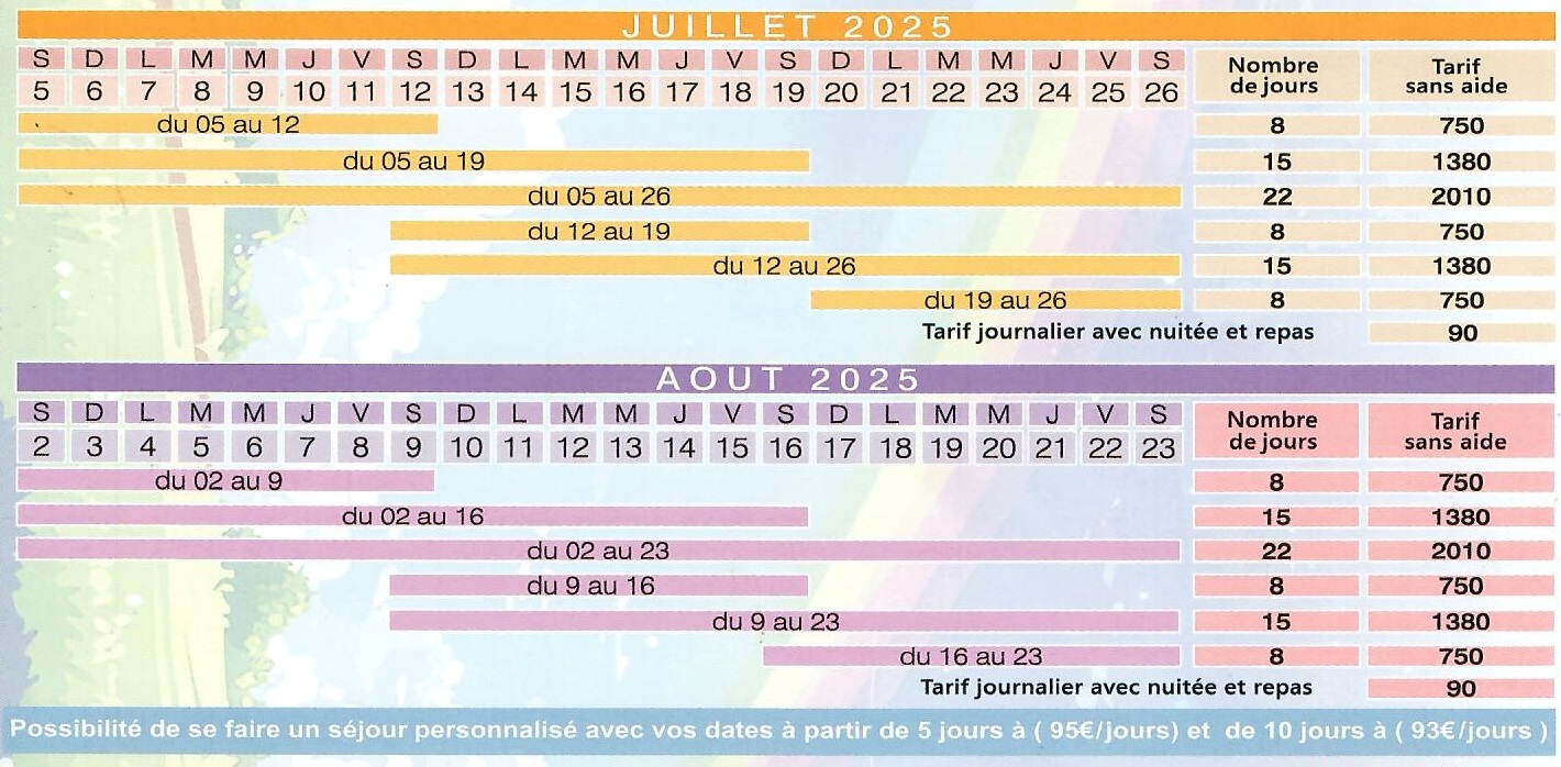 Ces tarifs incluent l'adhésion individuelle annuelle de 30€ à l'association. Vous pouvez bénéficier d'une aide de votre CAF, service social, municipalité ou comité d'entreprise.
